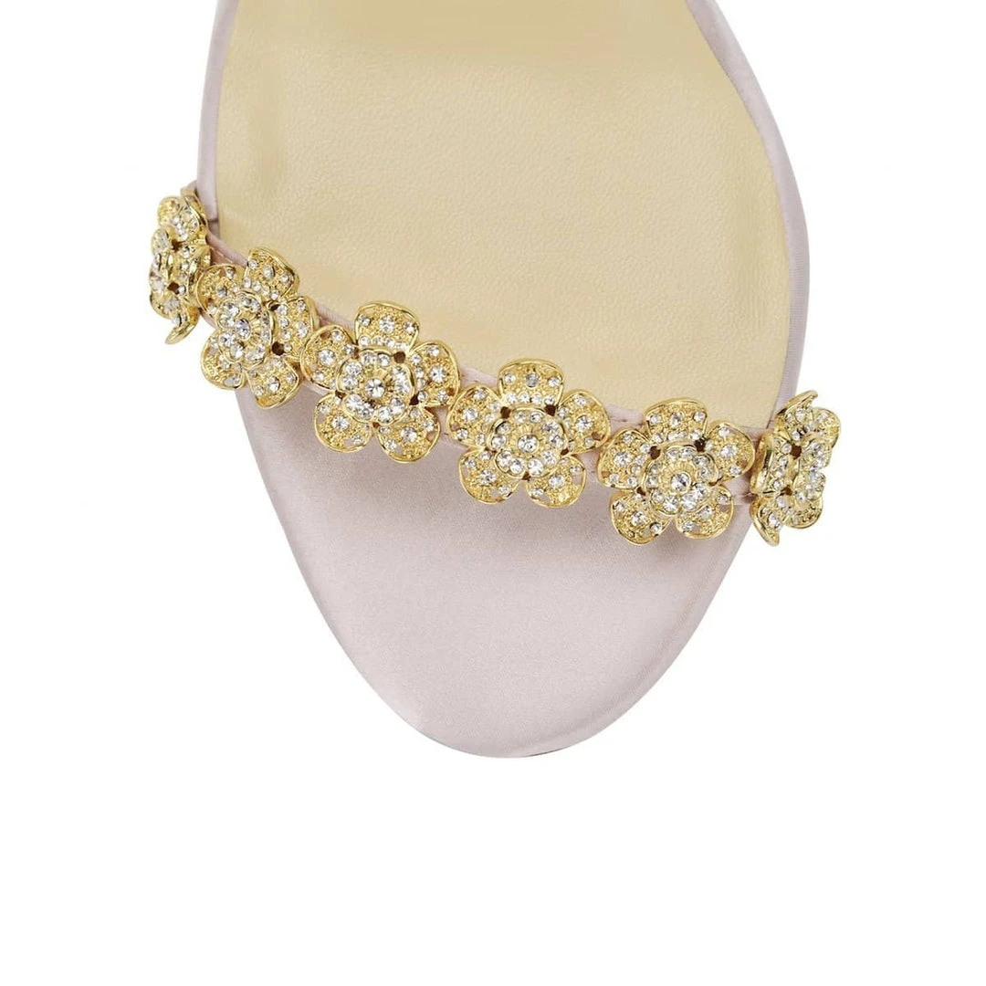 Mariee Blush pink wedding shoes by Liv Hart are from the Bella Belle Capsule collection. These pink shoes with bows are reminiscent of modern French styles. Brides seeking a light pink wedding shoe or dainty evening heels will love Mariee. Handmade in luxurious blush silk, these 4 inch stiletto heels have 4 styles in 1: plain silk strap, silk strap with silk bow, floral crystal strap, or floral crystal strap with silk bow, so you can be creative for any outfit and occasion. The silk straps, silk bows, and floral crystal straps are removable for versatility.